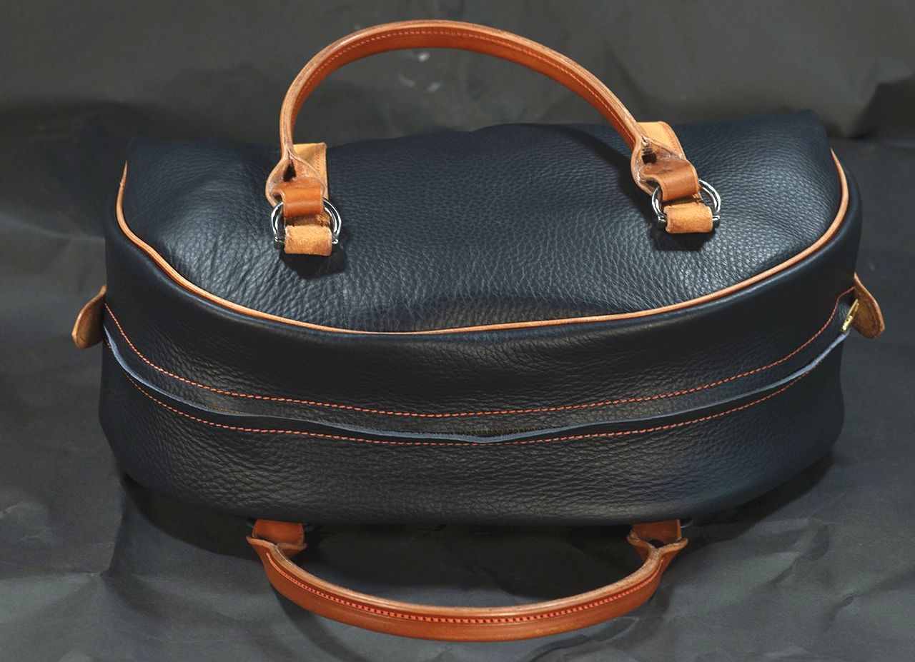 Cow leather, olive leaf tanning, dark blue, with natural A-summerhides, stainless steel hardware, embossed logo