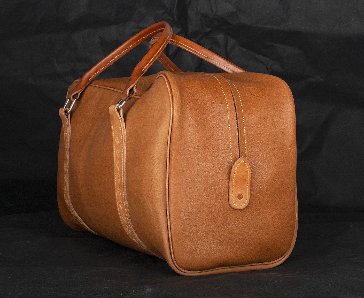 Material mix: cow leather, olive leaf tanning with natural canvas, stainless steel hardware, leather loops