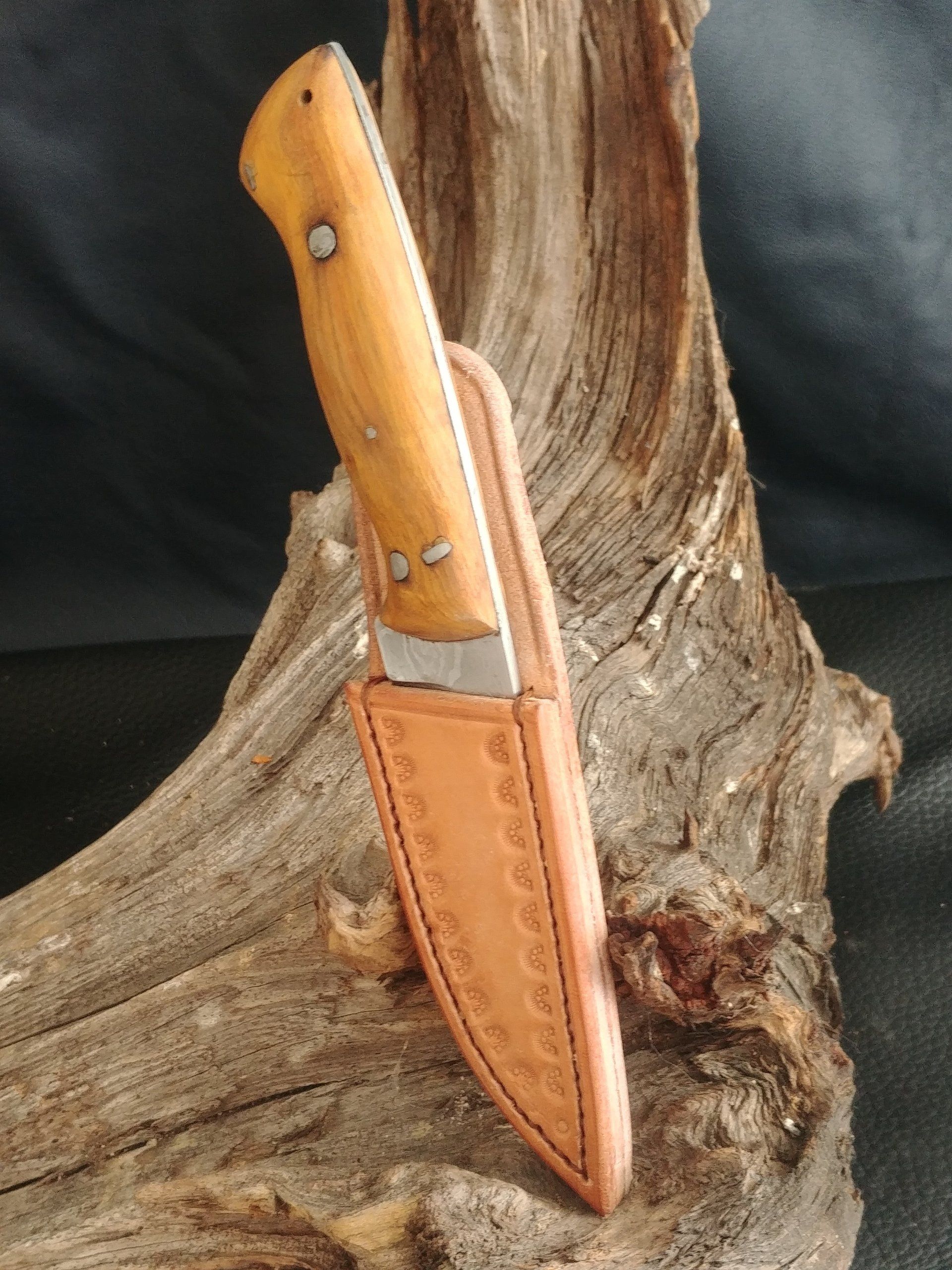 Rinderleder, Olivenblattgärbung, weiß, mit A-summerhides Natur, integrierte Messerscheide, Hardware Edelstahl